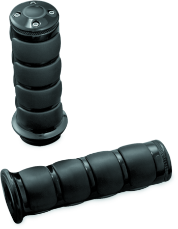 If you like our chrome ISO-Grips then you’ll love the same great comfort in these new Black ISO-Grips. Powder-coated black for a sinister appearance and wrapped in soft ISO rubber these grips dampen handlebar vibrations while providing a sure, cushioned feel for long haul comfort. Get total comfort with our matching throttle bosses, or customize with our colored accent rings.